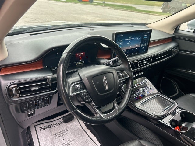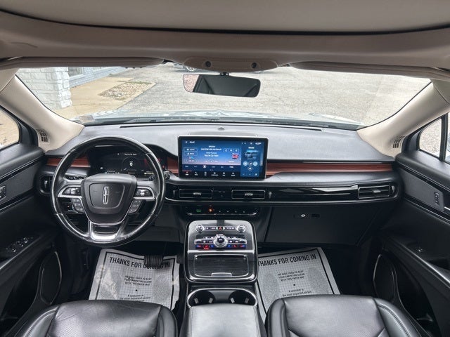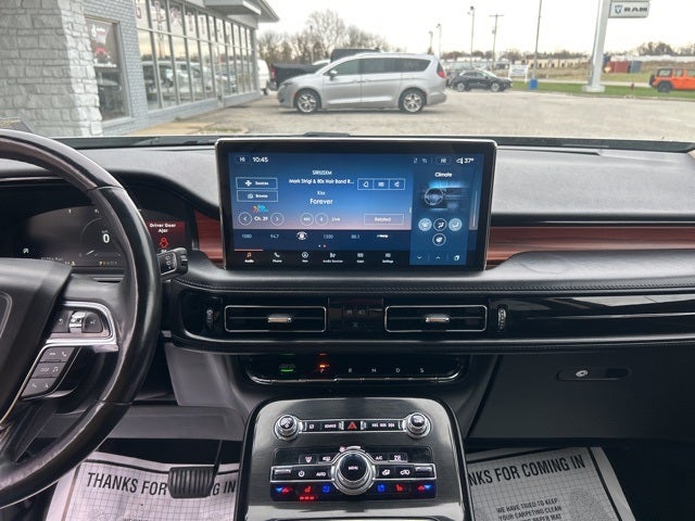 10 Speakers, 3.80 Axle Ratio, 360 Degree Camera w/Rear Camera Wash, 4-Wheel Disc Brakes, ABS brakes, Active Park Assist 2.0, Adaptive Cruise Control, Air Conditioning, Alexa Built-In, Alloy wheels, AM/FM radio: SiriusXM with 360L, Auto High-beam Headlights, Auto tilt-away steering wheel, Auto-dimming door mirrors, Auto-dimming Rear-View mirror, Automatic temperature control, Brake assist, Bumpers: body-color, Compass, Delay-off headlights, Distance Indication & Alert, Driver door bin, Driver vanity mirror, Dual front impact airbags, Dual front side impact airbags, Electronic Stability Control, Emergency communication system: 911 Assist, Equipment Group 200A, Evasive Steering Assist, Forward-Side-Rear Parking Sensors, Four wheel independent suspension, Front anti-roll bar, Front Bucket Seats, Front Center Armrest w/Storage, Front dual zone A/C, Front reading lights, Fully automatic headlights, Garage door transmitter: HomeLink, Heated door mirrors, Heated front seats, Heated rear seats, Heated steering wheel, Illuminated entry, Knee airbag, Leather steering wheel, Lincoln Co-Pilot360 1.0 Plus Package, Low tire pressure warning, Memory seat, Navigation System, Occupant sensing airbag, Outside temperature display, Overhead airbag, Overhead console, Panic alarm, Passenger door bin, Passenger vanity mirror, Power door mirrors, Power driver seat, Power Liftgate, Power moonroof: Panoramic Vista Roof, Power passenger seat, Power steering, Power windows, Prem Lthr-Trimmed Heated/Ventilated Captain Seats, Radio data system, Radio: AM/FM/HD Audio System, Rain sensing wipers, Rear anti-roll bar, Rear reading lights, Rear seat center armrest, Rear window defroster, Rear window wiper, Remote keyless entry, Security system, Speed control, Speed-sensing steering, Speed-Sensitive Wipers, Split folding rear seat, Spoiler, Steering wheel memory, Steering wheel mounted A/C controls, Steering wheel mounted audio controls, SYNC 4 w/Enhanced Voice Recognition, Tachometer, Telescoping steering wheel, Tilt steering wheel, Traction control, Trip computer, Turn signal indicator mirrors, Variably intermittent wipers, Ventilated front seats, Wheels: 18 Premium Painted Bright Machined Alum, Wheels: 20 Prem Painted Bright Machined Aluminum.