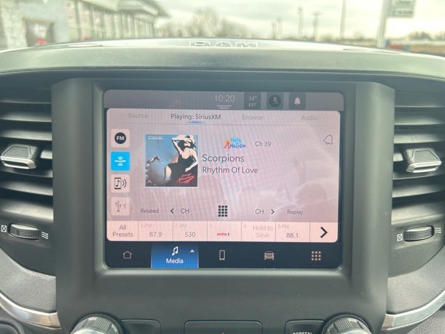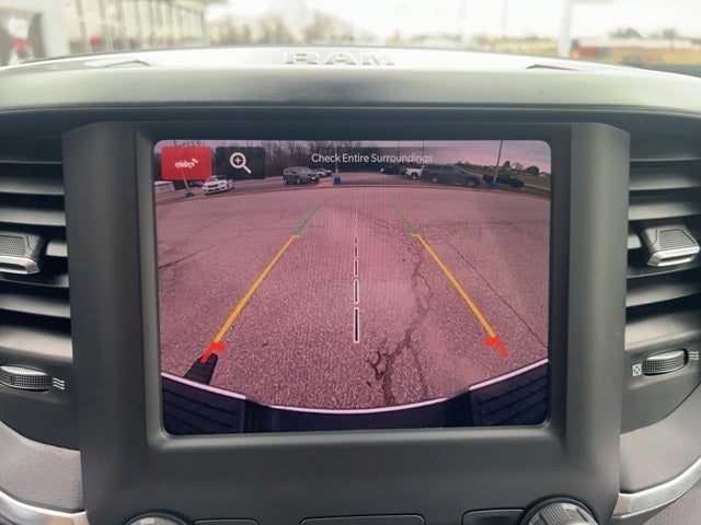 2 Way Rear Headrest Seat, 2nd Row In Floor Storage Bins, 3.73 Axle Ratio, 4 Way Front Headrests, 4-Wheel Disc Brakes, 40/20/40 Split Bench Seat, 4G LTE Wi-Fi Hot Spot, 6 Speakers, 8.4 Touchscreen Display, 9 Alpine Speakers w/Subwoofer, ABS brakes, Active Noise Control System, Air Conditioning, Anti-Spin Differential Rear Axle, Apple CarPlay, Auto Power-Folding Mirrors, Bed Utility Group, Big Horn IP Badge, Black Exterior Mirrors, Bluetooth® Handsfree Phone & Audio, Brake assist, Bumpers: chrome, Center Hub, Center Stack Storage Drawer, Chrome Flat Cab-Length Side Steps, Cloth 40/20/40 Bench Seat, Compass, Connectivity - US/Canada, Delay-off headlights, Driver door bin, Dual front impact airbags, Dual front side impact airbags, Dual Glove Boxes, Electronic Stability Control, Electronically Controlled Throttle, Emergency communication system: SiriusXM Guardian, Exterior Mirrors Courtesy Lamps, Exterior Mirrors w/Heating Element, Exterior Mirrors w/Supplemental Signals, Foam Bottle Insert (Door Trim Panel), Footwell Courtesy Lamp, For Details, Visit DriveUconnect.com, For More Info, Call 800-643-2112, Forward & Reverse Utility Lights, Front anti-roll bar, Front Armrest w/Cupholders, Front Center Armrest w/Storage, Front Center Seat Cushion Storage, Front Fog Lamps, Front License Plate Bracket, Front reading lights, Front Seat Back Map Pockets, Fully automatic headlights, Global Telematics Box Module (TBM), Glove Box Lamp, Google Android Auto, GPS Antenna Input, Heated door mirrors, Illuminated entry, Integrated Center Stack Radio, Integrated Voice Command w/Bluetooth®, Leather Wrapped Steering Wheel, LED Bed Lighting, Level 1 Equipment Group, Locking Lower Glove Box, Low tire pressure warning, Manual Adjust 4-Way Driver Seat, Manual Adjust 4-Way Front Passenger Seat, Manufacturer's Statement of Origin, Mirror Running Lights, MOPAR Deployable Bed Step, MOPAR Spray In Bedliner, Occupant sensing airbag, Outside temperature display, Overhead airbag, Overhead console, Panic alarm, ParkView Rear Back-Up Camera, Passenger door bin, Passenger vanity mirror, Power 2-Way Driver Lumbar Adjust, Power Adjust 8-Way Driver Seat, Power Adjust Mirrors, Power Adjustable Convex Aux Mirrors, Power door mirrors, Power Heated Fold Telescope Mirrors, Power steering, Power Telescoping Mirrors, Power windows, Premium Cloth 40/20/40 Bench Seat (DISC), Protection Group, Quick Order Package 2GZ Big Horn, Radio data system, Radio: Uconnect 3 w/5 Display, Radio: Uconnect 5 W w/8.4 Display, Rear 60/40 Folding Seat, Rear anti-roll bar, Rear Dome w/On/Off Switch Lamp, Rear Folding Seat, Rear seat center armrest, Rear step bumper, Remote keyless entry, Remote USB Port - Charge Only, Selectable Tire Fill Alert, SiriusXM Radio Service, SiriusXM Satellite Radio, Speed control, Steering Wheel Mounted Audio Controls, Storage Tray, Tachometer, Tilt steering wheel, Tip Start, Tow Hooks, Traction control, Trip computer, Turn signal indicator mirrors, Variably intermittent wipers, Voltmeter, Wheels: 18 x 8.0 Polished Aluminum, Wheels: 18 x 8.0 Steel Chrome Clad.