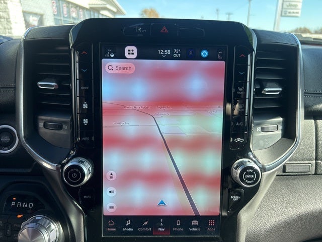10 Speakers, 3 Rear Seat Head Restraints, 3.55 Rear Axle Ratio, 4 Way Front Headrests, 4-Wheel Disc Brakes, 4G LTE Wi-Fi Hot Spot, ABS brakes, Air Conditioning, Alloy wheels, AM/FM radio: SiriusXM with 360L, Apple CarPlay, Apple CarPlay/Android Auto, Audio memory, Auto High-beam Headlights, Auto Power-Folding Mirrors, Auto-dimming door mirrors, Auto-Dimming Exterior Driver Mirror, Auto-dimming Rear-View mirror, Automatic temperature control, Brake assist, Bumpers: chrome, Chrome Exterior Mirrors, Compass, Connected Travel & Traffic Services, Connectivity - US/Canada, Convex Wide-Angle Exterior Mirror Insert, Delay-off headlights, Driver door bin, Driver Seat Memory, Driver vanity mirror, Dual front impact airbags, Dual front side impact airbags, Electronic Stability Control, Exterior Mirrors Courtesy Lamps, Exterior Mirrors w/Heating Element, Exterior Mirrors w/Memory, Exterior Mirrors w/Supplemental Signals, Front anti-roll bar, Front Center Armrest w/Storage, Front dual zone A/C, Front fog lights, Front License Plate Bracket, Front reading lights, Front Seat Back Map Pockets, Front wheel independent suspension, Fully automatic headlights, Garage door transmitter, Google Android Auto, GPS Antenna Input, GPS Navigation, HD Radio, Heated door mirrors, Heated Front Seats, Heated front seats, Heated rear seats, Heated Steering Wheel, Heated steering wheel, Illuminated entry, Integrated Voice Command w/Bluetooth®, Laramie Level 1 Equipment Group, Leather steering wheel, Leather Trim 40/20/40 Bench Seat, Low tire pressure warning, Manufacturer's Statement of Origin, Memory seat, Navigation System, Occupant sensing airbag, Outside temperature display, Overhead airbag, Overhead console, Panic alarm, ParkView Rear Back-Up Camera, Passenger door bin, Passenger vanity mirror, Power 2-Way Driver Lumbar Adjust, Power 2-Way Passenger Lumbar Adjust, Power Adjust 8-Way Front Passenger Seat, Power door mirrors, Power driver seat, Power passenger seat, Power steering, Power windows, Quick Order Package 21H Laramie, Radio data system, Radio: Uconnect 5 Nav w/12.0 Display, Rain Sensitive Windshield Wipers, RAM Grille Badge - Chrome, Rear anti-roll bar, Rear reading lights, Rear seat center armrest, Rear step bumper, Remote keyless entry, Remote Tailgate Release, Security system, SiriusXM w/360L, Speed control, Split folding rear seat, Steering wheel mounted audio controls, Tachometer, Telescoping steering wheel, Tilt steering wheel, Traction control, Trip computer, Turn signal indicator mirrors, USB Host Flip, Variably intermittent wipers, Ventilated Front Seats, Ventilated front seats, Voltmeter, Wheels: 20 x 9 Premium Paint/Polish.